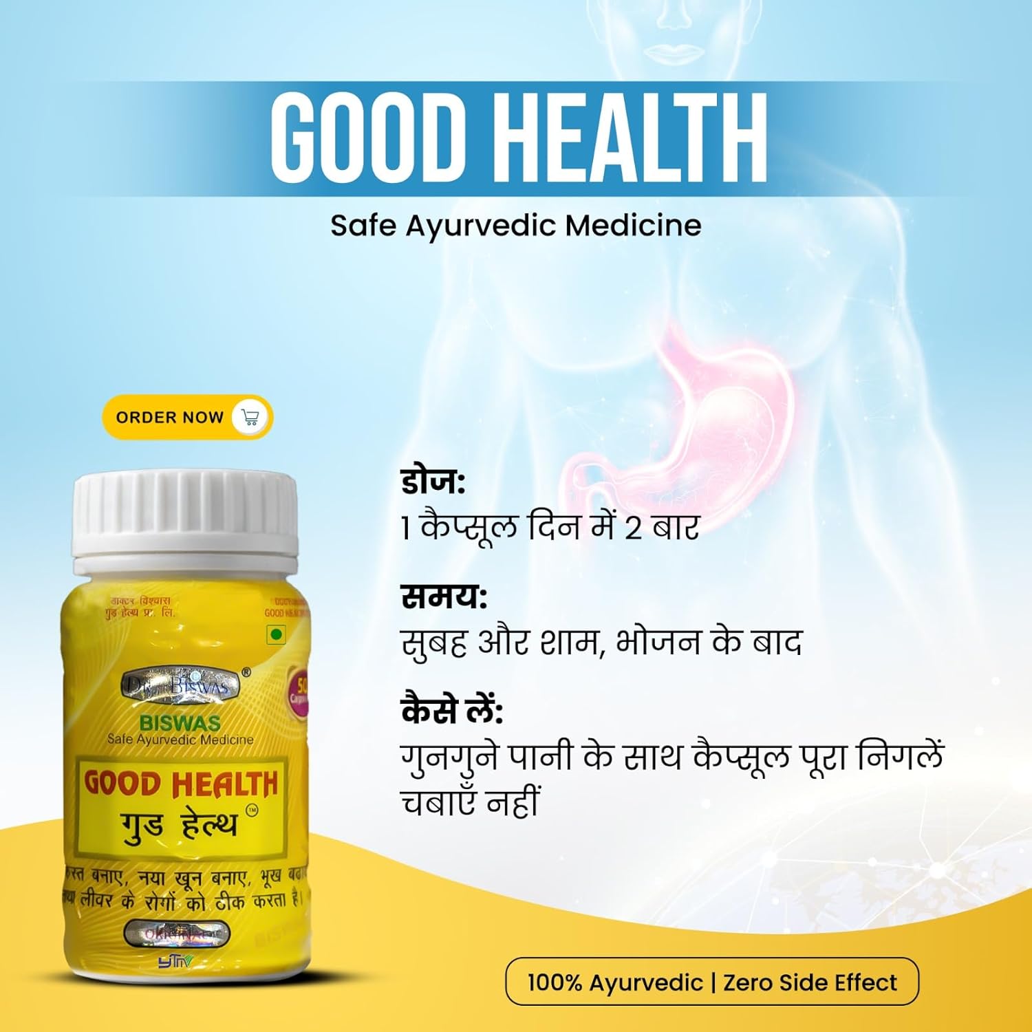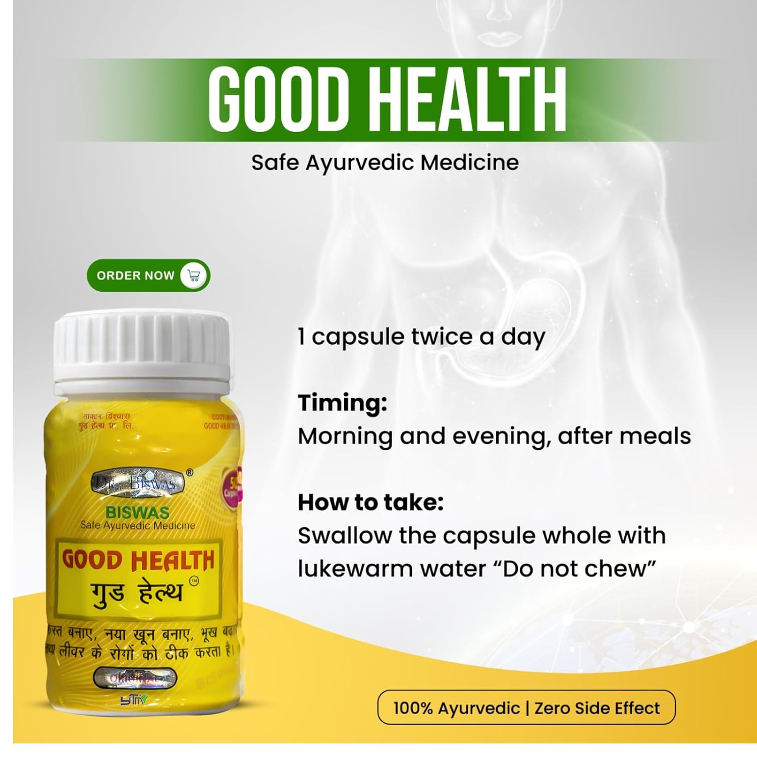 Dr Biswas’s Good Health Capsule is a product that is known to improve the overall immunity of the body. It helps the body prevent chronic illness and muscle wasting. This product also helps to reduce weight and promotes overall digestive functions. Made with special attention for people looking to get their bulk on, this capsule enhances protein synthesis and athletic performance.